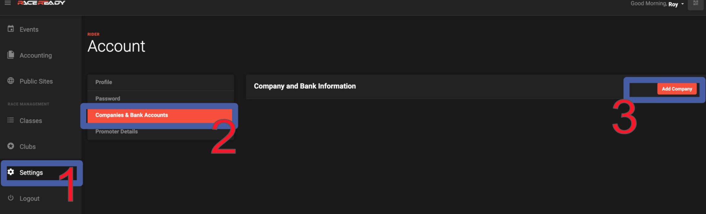 Navigate to app.iraceready.com to log in to your new account, entering the password you created in the beginning. You'll be taken to your promoter dashboard where you can create your custom classes (which you only have to do once), and then you can create an event.
