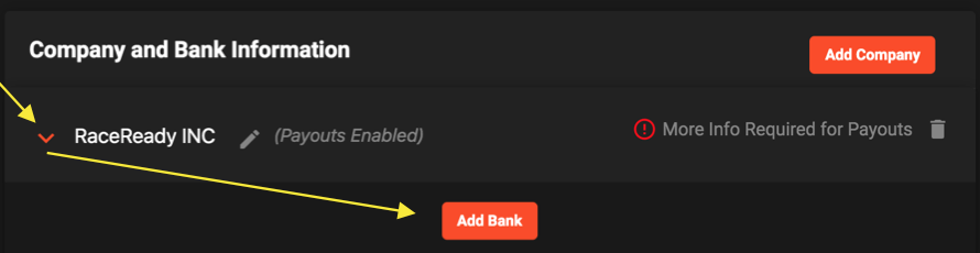 Next click on the small up-arrow next to your new company name and then click Add Bank