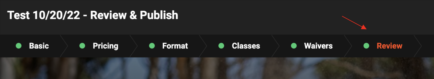 Once in the event edit interface, advance and save each page until you reach the "Review" page.